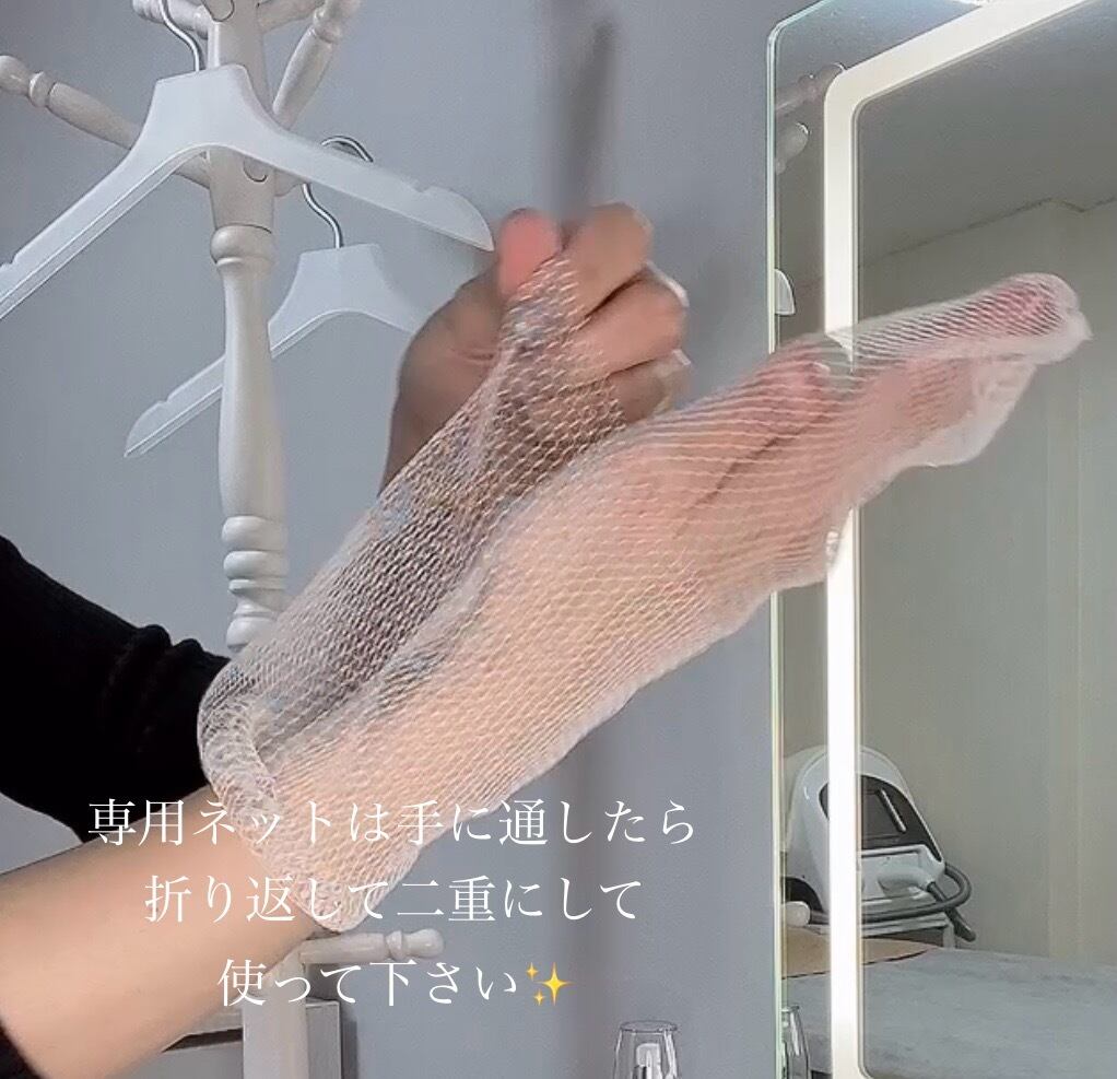 専用のネットでマイナスイオンの弾力のある泡をつくり優しくプラスイオンの汚れを吸着し洗い上げていきます。